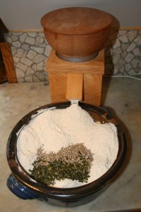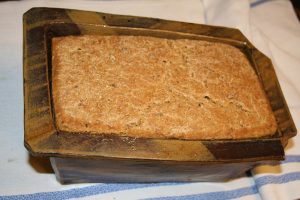 Will man ein wirklich gutes und auch lockeres Vollkornbrot backen, so nehme man eine schwere Keramikschüssel und gebe mit Sauerteig versetztes Vollkornmehl mit viel Wasser hinein (der Teig rinnt fast durch die Finger, sehen Sie nach unserem Brotbackrezept). Natürlich müssen Sie sich eine kleine Haushaltsmühle zulegen, denn NUR mit FRISCH gemahlenem Mehl können Sie, wie in einer amerikanischen Studie empfohlen, Arzt-fern leben. Das bietet (deren Aussage nach) die größten Überlebenschancen. Früher backte man Fladenbrot oder in Körbchen im Lehmbackofen, weil der Teig sich mit viel Wasser angesetzt, niemals als Laib backen lassen würde. Ohne Zutaten, nur etwas Salz, und Sie lernen den Brot- Getreidegeschmack kennen. Wasser wirkt statt Triebmittel als Flexibilitätsmittel, das Brot geht jetzt gut auf und wird locker, und erinnert geschmacklich unser Immunsystem an „gute alte Zeiten“. Ohne Chemie, ohne Zutaten, wie das schmeckt kann ich Ihnen nicht erklären, das kann man nur selbst ausprobieren. Wenn der Teig gut durchbacken soll, ist das in einer Metallform schwer, denn er bildet (guter Wärmeleiter) eine verbrannte harte Kruste, besonders wenn so viel Wasser am Teig ist. Das Innere des Brotes bleibt auf diese Weise oft Klitsch, außerdem ist die Kruste nicht gesundheitsfördernd. Die Keramikform, als Alternative für den normalen Elektroherd, ist ein schlechter Wärmeleiter und der Teig macht jetzt genau das, was er machen soll. Ich verspreche Ihnen – ein besseres Brot bekommen Sie nicht ! Ich will es hierbei bewenden lassen, auch wenn es noch mehr zu betrachtende Aspekte gibt – guten Appetit und gute Gesundheit …