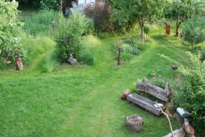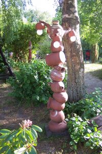 Auf unserem gesamten Anwesen befinden sich verteilt mehrere Ausstellungen – angefangen von eigenen Töpferwaren in der Manufaktur über Malereien sowie Grafiken im Café und in den Ferienwohnungen bis hin zu eigenen und von anderen Künstlern als Leihgaben bereitgestellten Skulpturen im Außenbereich – insgesamt sind dabei ca. 70 Künstler vertreten. Wenn Sie sich daran beteiligen möchten – freuen wir uns auf Ihr Angebot bzw. Ihre Anfrage. Weniger als Exponat, so doch vielmehr für den ganz praktischen Einsatz wurde von uns vor vielen Jahren aus großen Findlingen auf einer kleinen Erhebung ein recht beeindruckender Steinkreis angelegt – dessen ganz besonderen Zweck erläutern wir Ihnen vor Ort gerne noch ausführlicher. Der Steinkreis befindet sich am Rande unserer Ausstellung im Außenbereich: